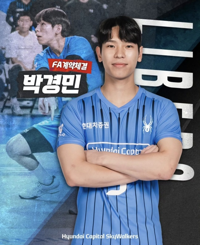 V리그 남자부 FA 1호 계약이 우승팀 현대캐피탈에서 나왔다. 그 주인공은 2024~2025시즌 현대캐피탈을 남자부 최초 트레블(KOVO컵·정규리그·챔피언 결정전)로 이끈 국가대표 리베로 박경민(26)이었다.