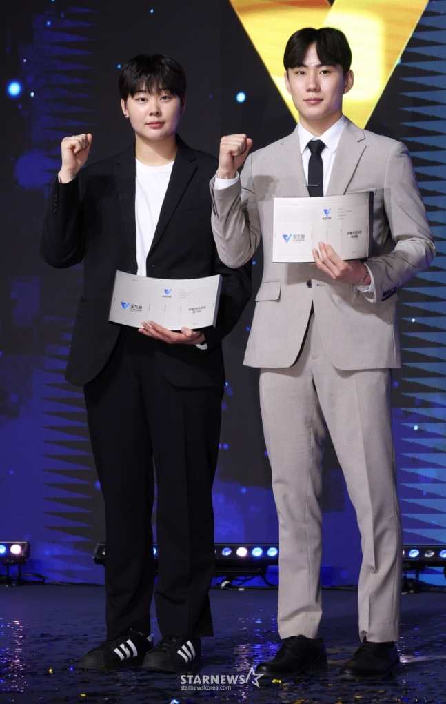한태준과 김다은은 14일 서울특별시 서대문구 홍은동에 위치한 그랜드 스위스 호텔에서 열린 '도드람 2024~2025 V리그 시상식'에서 영플레이어상을 수상했다.