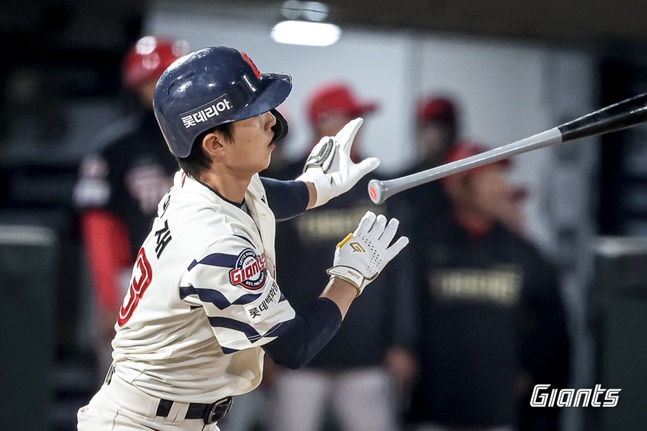 이전까지 규정타석을 채우지 못했던 전민재는 13일 사직 NC전에서 4타석 3타수 2안타를 기록, 규정타석을 넘어선 동시에 타격 순위에 이름을 올렸다. 물론 아직 시즌을 20%도 소화하지 않은 시점이지만, 최근 뜨거운 타격감을 증명하듯이 진입하자마자 순위표 제일 위에 이름을 올렸다.