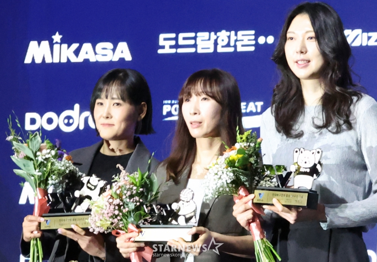 스포츠일반[포토] 임명옥-이효희-양효진 '코트의 여전사'발행 : 2025.04.15 ・ 09:41홍은동=김진경 대기자2024-2025 V리그 시상식이 14일 서울 서대문구 스위스 그랜드 호텔에서 열렸다.임명옥(왼쪽부터), 이효희, 양효진이 20주년 여자 베스트7을 수상한 후 기념촬영을 하고 있다.<저작권자 © 스타뉴스, 무단전재 및 재배포 금지>레오V리그배구시상식김연경베구여제추천 기사김진경 대기자기자홈좋아요 스포츠-일반의 인기 급상승 뉴스스포츠-일반의 최신 뉴스