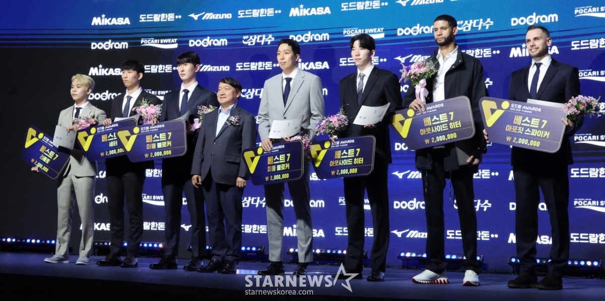 스포츠일반[포토] 위풍당당 남자 베스트7발행 : 2025.04.15 ・ 09:56홍은동=김진경 대기자광고삭제2024-2025 V리그 시상식이 14일 서울 서대문구 스위스 그랜드 호텔에서 열렸다.남자 베스트7 수상자들이 기념촬영을 하고 있다.왼쪽부터 정민수, 황택의, 김준우, 이강덕 KBS N 사장, 최민호, 허수봉, 레오, 비예나.<저작권자 © 스타뉴스, 무단전재 및 재배포 금지>레오V리그배구시상식김연경베구여제추천 기사김진경 대기자기자홈좋아요 스포츠-일반의 인기 급상승 뉴스스포츠-일반의 최신 뉴스