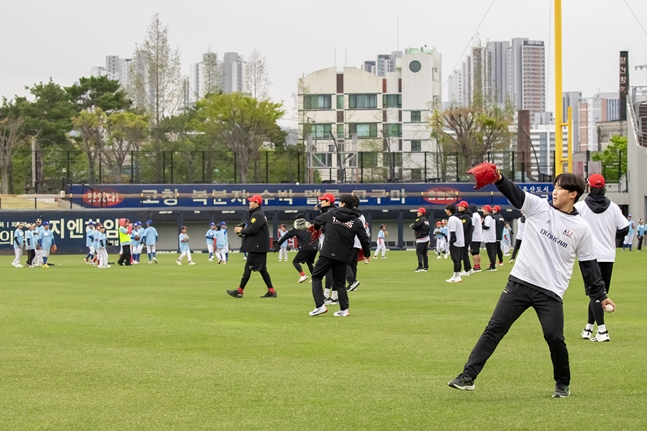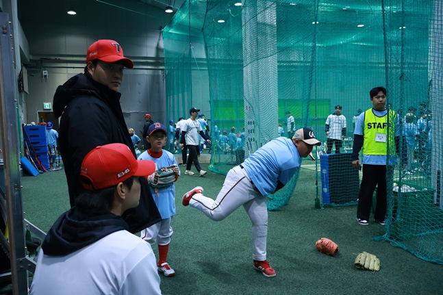 14일 우천으로 인해 야구클리닉은 그라운드에서 캐치볼을 진행 후 실내 연습장으로 이동해 안전하게 진행되었다. 실내라는 제한된 공간에서도 참가 학생들은 오히려 선수들과 더욱 가까운 거리에서 직접적인 교습을 받을 수 있었으며, 이론 교육과 함께 평소 궁금했던 점을 자유롭게 질문하며 유쾌하고 뜻깊은 시간을 가졌다.