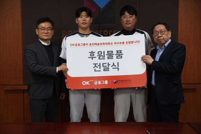 OK금융그룹은 "지난 14일 용인예술과학대학교 야구부에 훈련용품을 전달했다"고 밝혔다.