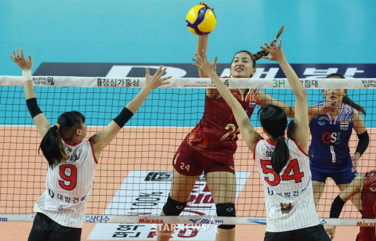 스포츠일반[포토] 깐야랏 '틈새 공략'발행 : 2025.04.19 ・ 15:19화성=김진경 대기자광고삭제2025 한국-태국 여자배구 올스타 슈퍼매치가 19일 경기도 화성체육관에서 열렸다.태국 올스타 깐야랏이 한국 정윤주, 오세연 블로킹 사이로 강스파이크를 날리고 있다.<저작권자 © 스타뉴스, 무단전재 및 재배포 금지>프로배구주하사와디캅태국슈퍼매치화성추천 기사김진경 대기자기자홈좋아요 스포츠-일반의 인기 급상승 뉴스스포츠-일반의 최신 뉴스