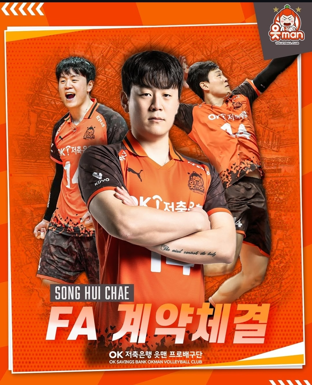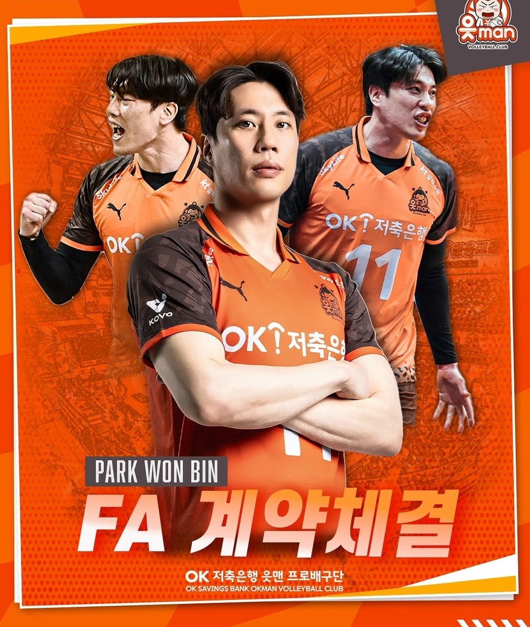 OK저축은행은 19일 공식 사회관계망서비스(SNS)를 통해 미들블로커 박원빈(33)과 아웃사이드 히터 송희채(33)와 계약을 체결했음을 밝혔다.