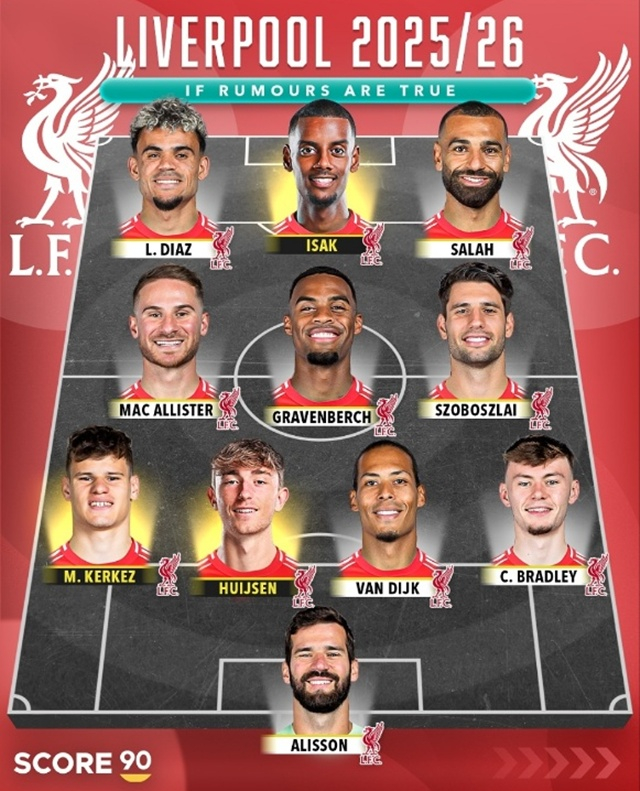 축구전문 433은 22일(한국시간) 리버풀의 2025~2026 새 시즌 베스트11을 예상했다. 이적 소문을 토대로 방출생, 영입생을 묶어 새롭게 선수단을 구성했다.
