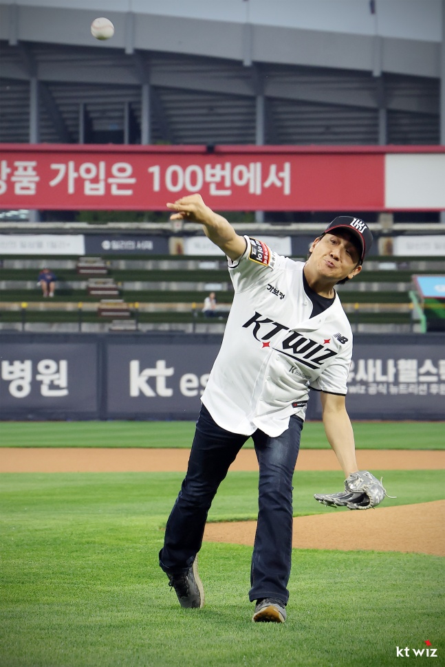 이날 KT는 수원시 권선구 소재 장애인평생교육기관인 새벽빛장애인학교 학생 50여명을 초청해, 교육 환경 개선을 위한 스마트 학습기 지원 전달식을 진행했다. 승리 기원 시구는 뇌병변 장애 진단을 받은 채지원 씨가 마운드에 올라 힘찬 시구를 선보였다.