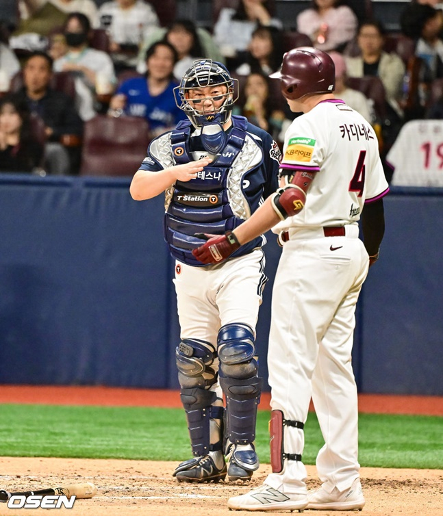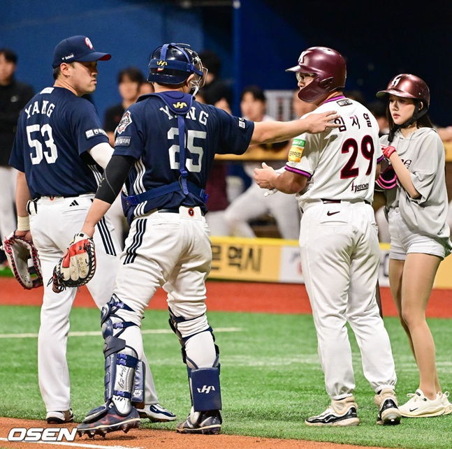 다만 김유성은 이날 내내 제구 난조를 겪었다. 2회 푸이그의 몸에 맞는 공 이후 임지열의 타석에서도 몸쪽으로 향하는 공을 던졌다. 임지열은 2번째라며 김유성에게 불만을 표했고 양의지와 양석환이 임지열을 달래는 모습도 포착됐다. 4회에도 카디네스가 연이어 몸쪽으로 향하는 공에 놀라며 불만을 나타냈다. 이번에도 양의지가 고의가 아니었다며 카디네스에게 설명하기도 했다.