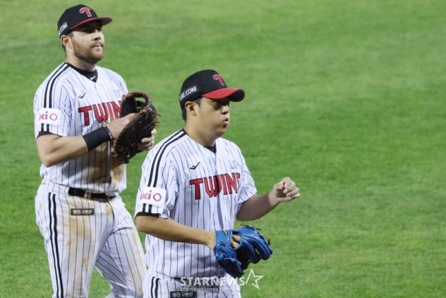 이번 시즌 자신의 전담 포수를 맡은 이주헌(22)에 대한 감사 인사까지 전했다. 이번 시즌 송승기는 LG 주전 포수 박동원(35)이 아닌 이주헌과 계속해서 호흡을 맞추고 있다. 송승기는 "이주헌의 지분이 80% 정도 된다. 제가 좋을 때와 좋지 않을 때를 잘 알아서 공을 받아보고 알기 때문에 리드를 잘 해준다. 리드가 80%이고 20%가 저의 컨디션인 것 같다"고 겸손한 모습까지 드러냈다.