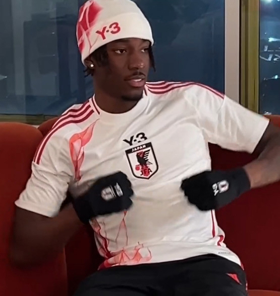 사진 속 마두에케는 일본 유니폼을 입고 소파에서 포즈를 취하고 있다. 머리부터 발끝까지 일본 대표팀 운동복이다. 마두에케는 아디다스와 후원 계약을 맺고 있다.