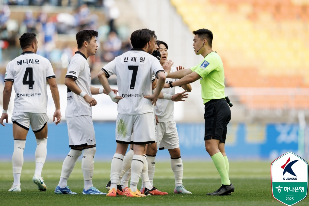 수원 삼성은 27일 수원월드컵경기장에서 열린 성남과 '2025 하나은행 K리그2' 9라운드 홈 경기서 3-2로 이겼다. 1-2로 뒤지고 있었지만, 페널티킥과 후반 추가 시간 득점을 더해 경기를 잡았다.