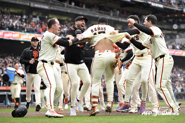 샌프란시스코는 28일(한국시간) 미국 캘리포니아주 샌프란시스코의 오라클 파크에서 열린 텍사스 레인저스와 2025 메이저리그 정규시즌 홈경기에서 3-2로 승리했다. 앞서 샌프란시스코는 전날에도 끝내기로 이긴 바 있다.