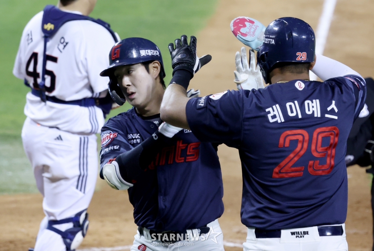 스포츠야구[포토] 나승엽 '땡큐 레이예스'발행 : 2025.04.29 ・ 11:54잠실=김진경 대기자2025 신한 SOL Bank KBO리그 두산 베어스 대 롯데 자이언츠 경기가 25일 잠실야구장에서 열렸다.롯데 나승엽이 7회초 무사 3루에서 2점 홈런을 날린 후 홈인하고 있다.<저작권자 © 스타뉴스, 무단전재 및 재배포 금지>프로야구KB0두산_베어스롯데_자이언츠황성빈황보르기니추천 기사김진경 대기자기자홈좋아요 스포츠-야구의 인기 급상승 뉴스스포츠-야구의 최신 뉴스