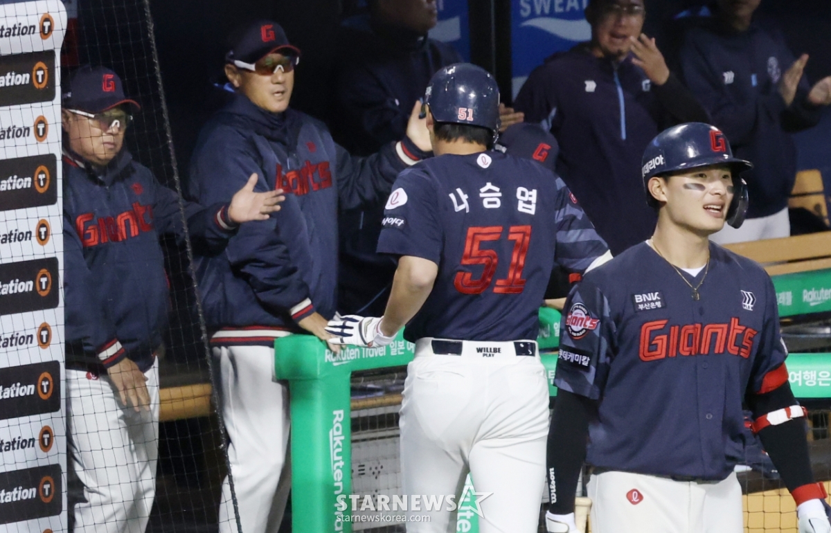 스포츠야구[포토] 김태형 감독 '나승엽 굿잡'발행 : 2025.04.29 ・ 11:55잠실=김진경 대기자2025 신한 SOL Bank KBO리그 두산 베어스 대 롯데 자이언츠 경기가 25일 잠실야구장에서 열렸다.롯데 나승엽이 7회초 무사 3루에서 2점 홈런을 날리고 홈인한 후 김태형 감독의 환영을 받고 있다.<저작권자 © 스타뉴스, 무단전재 및 재배포 금지>프로야구KB0두산_베어스롯데_자이언츠황성빈황보르기니추천 기사김진경 대기자기자홈좋아요 스포츠-야구의 인기 급상승 뉴스스포츠-야구의 최신 뉴스