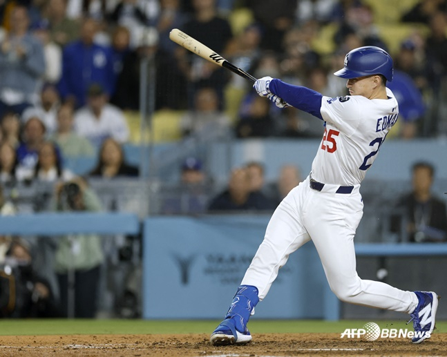 여기서 에드먼이 로니 엔리케즈의 높은 변화구를 통타해 우익수 앞으로 향하는 안타를 터트렸다. 그 사이 주자 2명이 모두 홈을 밟으면서 다저스는 7-6 재역전승을 거뒀다.