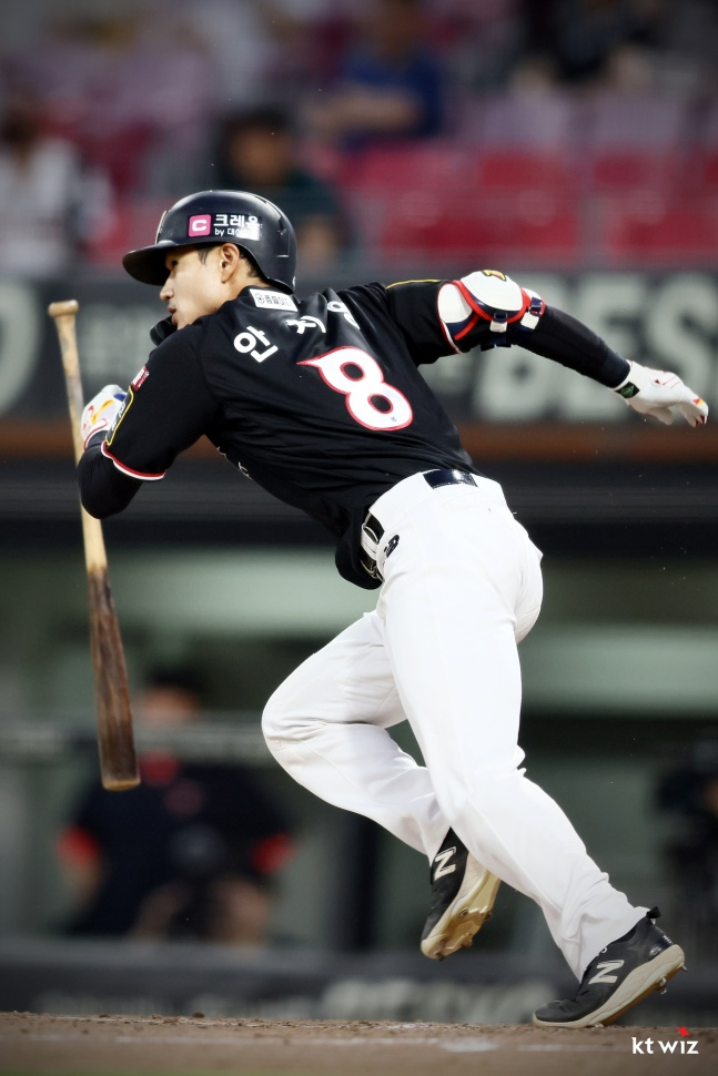 올해도 11경기에 나와 안타는 없지만, 사사구(2볼넷 1몸에 맞는 볼) 3개를 골라내고 출루하고 타점을 올리는 등 팀에 기여하고 있다. 이날도 퉁퉁 부은 손으로 교체를 거부하고 홈까지 내달린 투혼에서 KT는 간만의 빅이닝을 만들 수 있었다.