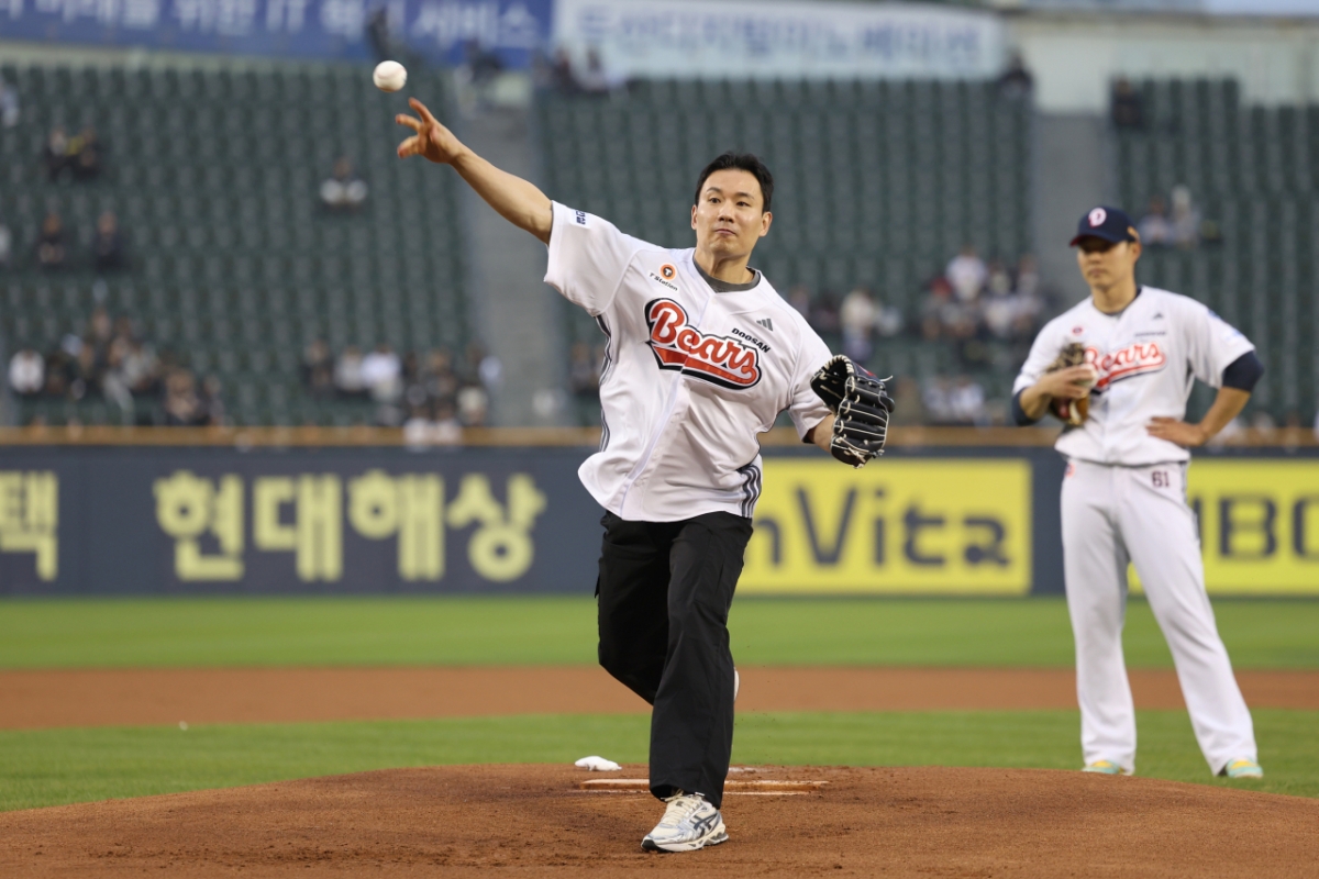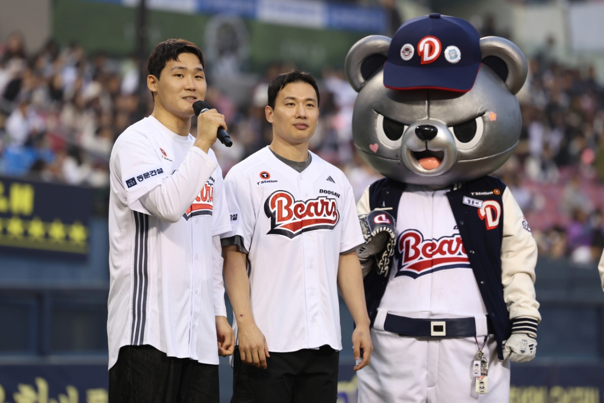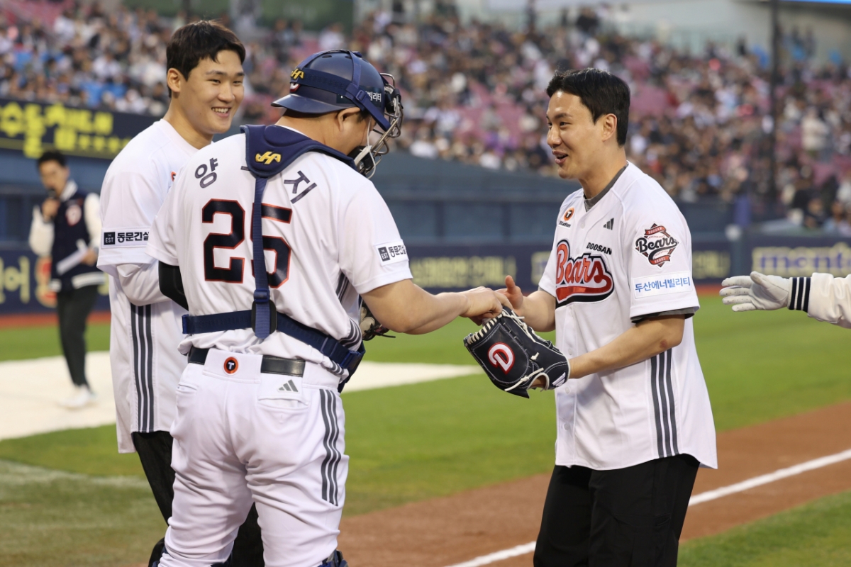 두산 베어스가 1일 잠실야구장에서 열리는 KT 위즈와 정규시즌 맞대결에서 승리기원 시구∙시타를 진행했다.