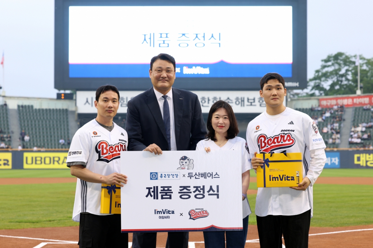 두산 베어스의 파트너사인 종근당건강은 10연패를 축하하며 '아임비타' 제품을 선수단에 전달했다.