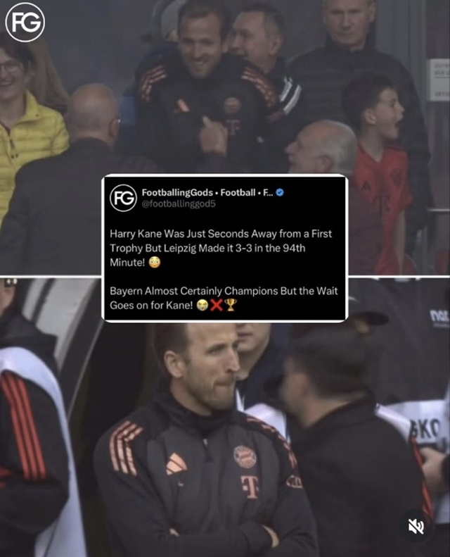 그런데 믿을 수 없는 일이 벌어졌다. 경기 종료 직전 뮌헨이 통한의 동점골을 허용한 것. 교체로 들어간 라이프치히 공격수 유수프 폴센이 극적인 동점골을 기록했다. 경기는 3-3으로 끝났고, 뮌헨의 우승 확정도 다음으로 미뤄졌다. 그 순간 케인은 엄청난 충격을 받은 듯 멍하니 서 있었다.