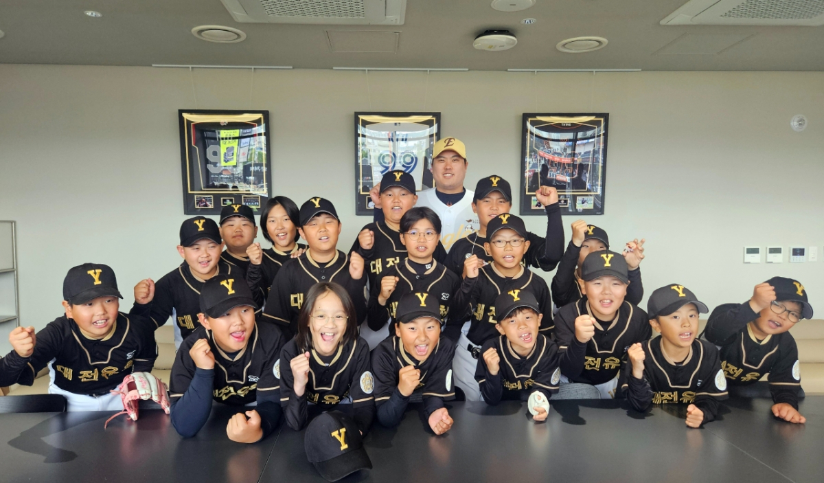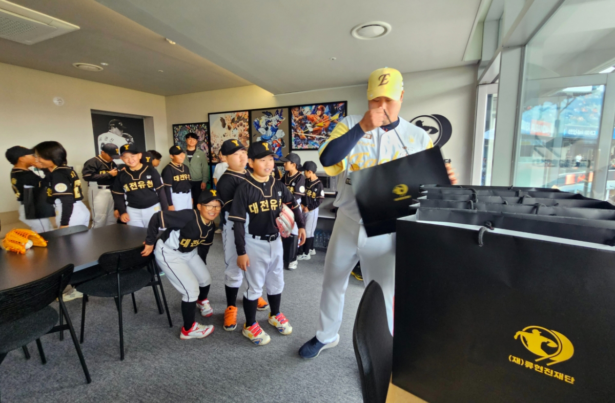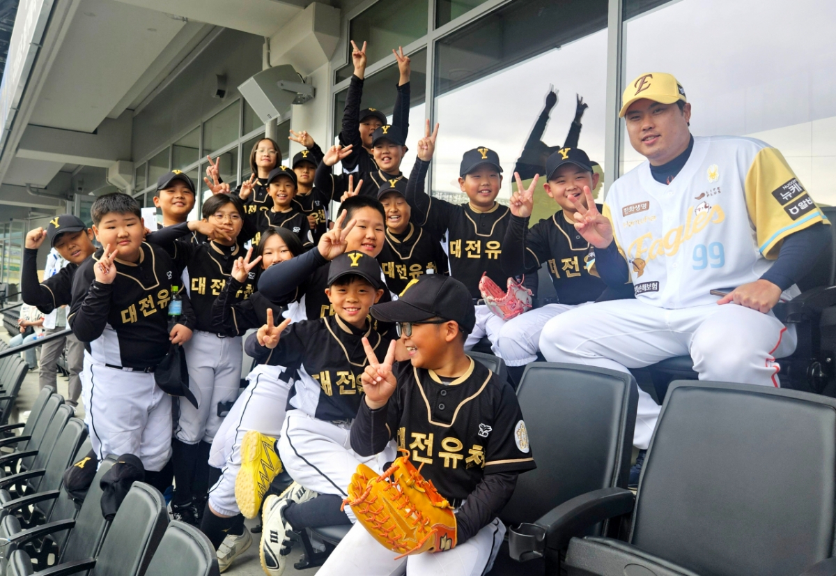 류현진재단이 지난 5일 어린이날을 맞아 대전 유천초등학교 야구부 학생 및 지도교사 20명을 대전한화생명볼파크 내 류현진재단 스카이박스에 초청, 프로야구 경기 관람 행사를 진행했다.