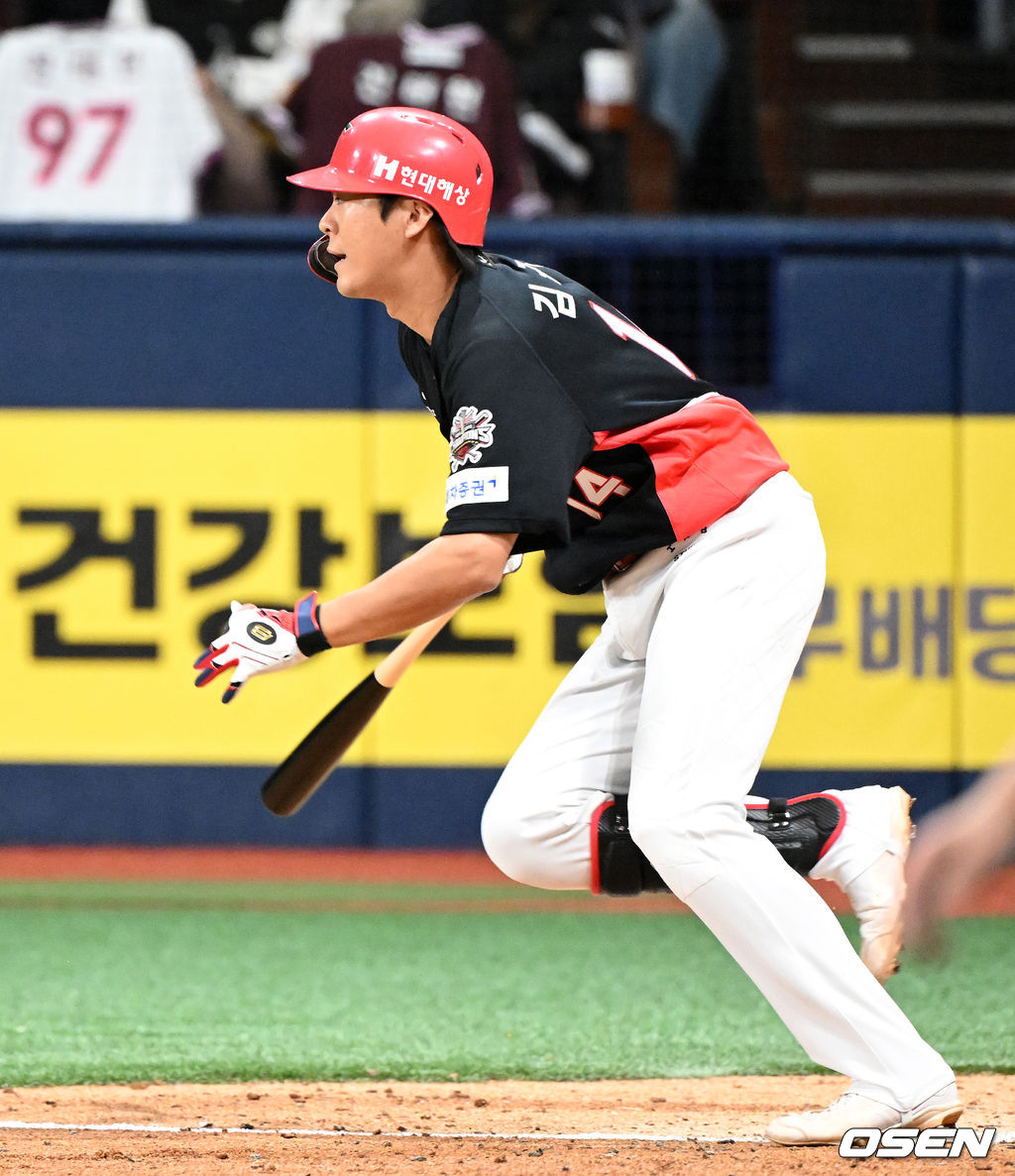 "번트를 댈 수도 있었는데 확률을 더 높이고자 버스타를 했다"는 김규성은 "정타가 아니어서 뛰면서 '제발, 제발 잡지마라'라고 생각했다"고 말했다.