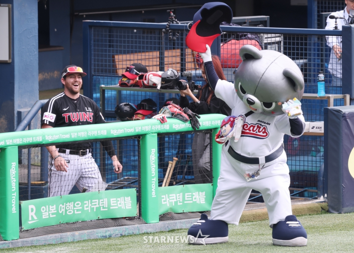 스포츠야구[포토] 오스틴 '이게 벤클 부를 일인가'발행 : 2025.05.06 ・ 13:30잠실=김진경 대기자2025 신한 SOL Bank KBO리그 두산 베어스 대 LG 트윈스 경기가 6일 잠실야구장에서 열렸다.두산 마스코트 철웅이가 LG 오스틴과 '가위바위보' 게임에서 연속으로 패하자 모자를 벗어던지고 있다.<저작권자 © 스타뉴스, 무단전재 및 재배포 금지>프로야구KBOLG_트윈스코엔윈오지횐치어리더추천 기사김진경 대기자기자홈좋아요 스포츠-야구의 인기 급상승 뉴스스포츠-야구의 최신 뉴스