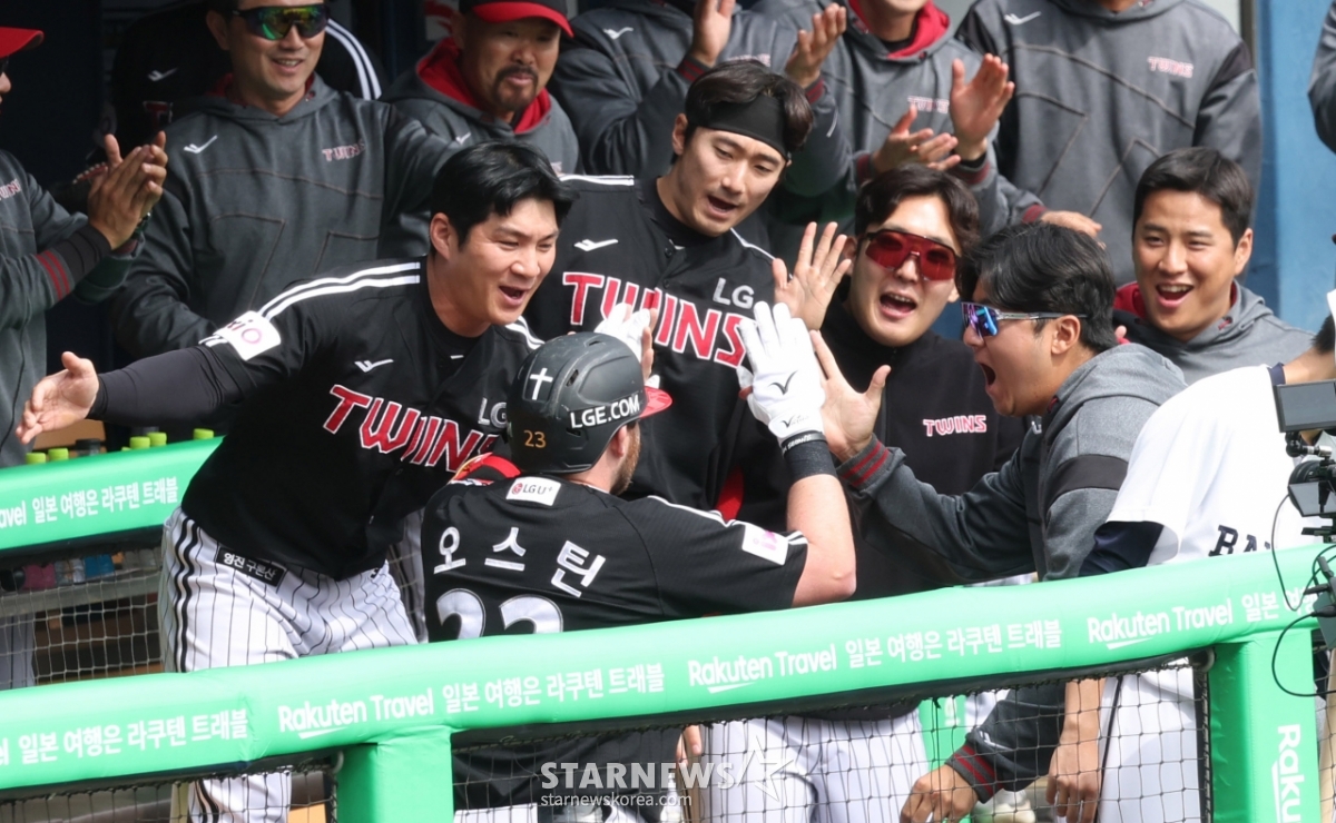 스포츠야구[포토] 오스틴 '등짝 스매싱을 바라오'발행 : 2025.05.06 ・ 15:39잠실=김진경 대기자2025 신한 SOL Bank KBO리그 두산 베어스 대 LG 트윈스 경기가 6일 잠실야구장에서 열렸다.LG 오스틴이 6회초 무사 1,2루에서 좌중월 3점 홈런을 날리고 홈인한 후 동료들의 환영을 받고 있다.<저작권자 © 스타뉴스, 무단전재 및 재배포 금지>프로야구KBOLG_트윈스코엔윈오지횐치어리더추천 기사김진경 대기자기자홈좋아요 스포츠-야구의 인기 급상승 뉴스스포츠-야구의 최신 뉴스