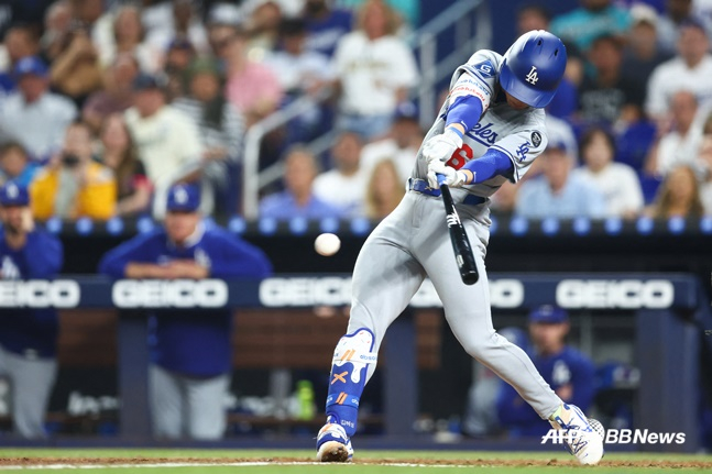 이것은 서막에 불과했다. 6일 마이애미 말린스전에서 김혜성은 9번 타자 겸 2루수로 선발 출전했다. 3경기 만에 스타팅 기회를 얻은 것이다. 로버츠 감독이 콜업 당시 "지금은 벤치에서 다른 빈자리를 채우겠지만, 김혜성이 선발로 나설 수 있도록 해보겠다"고 예고했는데, 이를 지킨 것이다.