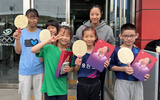 탁구 스타 신유빈(21·대한항공)이 꿈나무 선수들에게 약속을 지켰다.