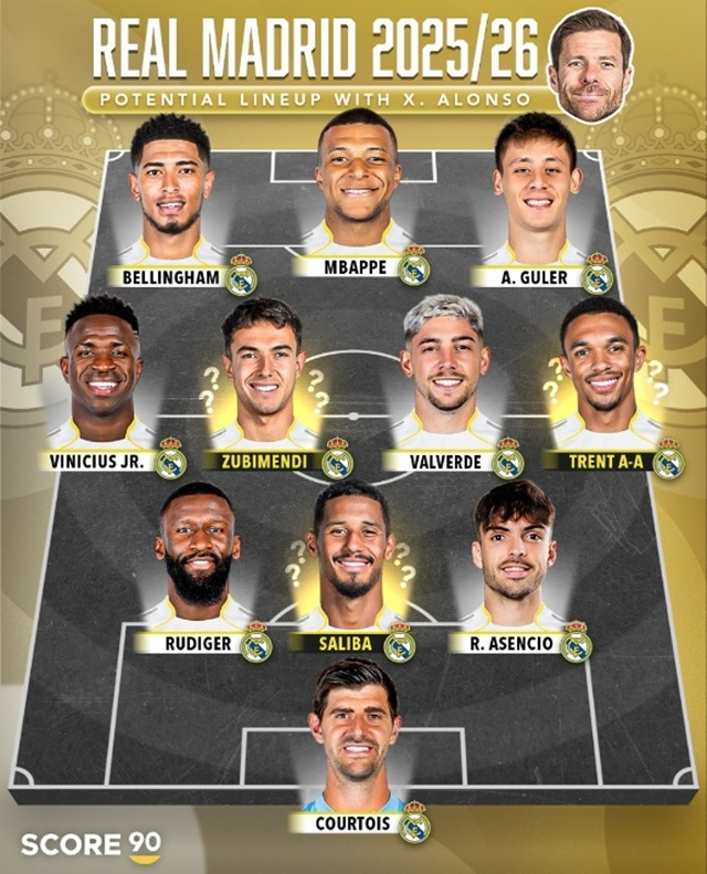 스코어90이 예상한 레알의 새로운 포메이션은 3-4-3이었다. 주드 벨링엄과 킬리안 음바페, 아르다 귈러가 스리톱에 배치됐다. 양 측 윙백으로는 비니시우스 주니오르와 아놀드, 중원은 주비멘디와 페데리코 발베르데가 맡았다. 스리백은 안토니오 뤼디거, 살리바, 라울 아센시오, 골키퍼는 티보 쿠르투아였다. 매체는 "올 여름 레알은 대대적인 변화를 맞을 수 있다"고 전했다.
