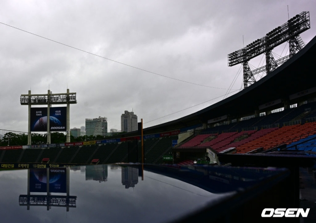 이날 오전부터 전국적으로 내린 비 탓이다. 야외 구장에서 시작되는 4경기 모두 비를 대비해 일찌감치 방수포를 깔아놨으나, 경기 시작 2시간 전까지도 비가 그치지 않으면서 취소 결정이 내려졌다.