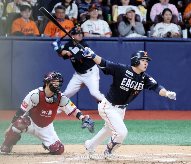 한화도 반격에 나섰다. 0-2로 지고 있는 3회초 1사에서 황영묵이 우전 안타로 치고 나갔다. 플로리얼이 중전 안타로 1사 1, 2루를 만들었고 문현빈이 우전 1타점 적시타로 한 점을 만회했다.