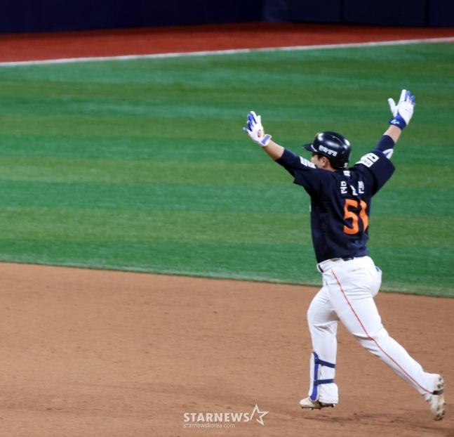 10연승의 과정은 정말 쉽지 않았다. 선발 투수 엄상백이 3⅔이닝 5피안타(4피홈런) 2사사구(1볼넷 1몸에 맞는 볼) 2탈삼진 4실점으로 일찌감치 무너진 것이 컸다. 하지만 조동욱(1이닝)-김종수(1⅓이닝)-박상원(1이닝)-한승혁(1이닝)이 실점 없이 막아내며 역전승의 발판을 마련했다.