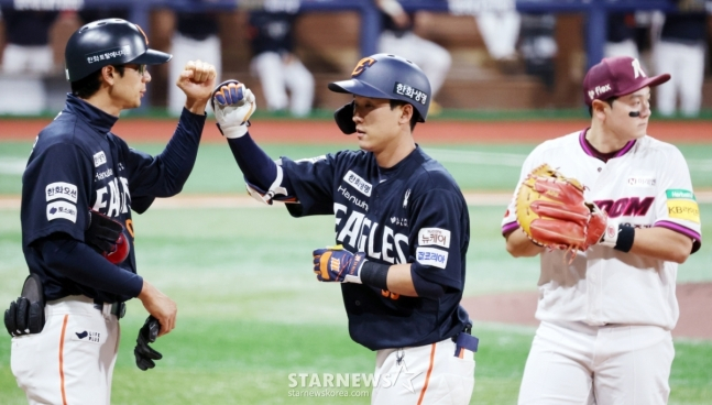 경기 전 한화 김경문 감독의 말이 떠오르는 순간. 김경문 감독은 최근 연승의 이유로 "선발뿐 아니라 불펜 투수도 잘 던지고 있다. 누구 하나만 잘 나서 연승한다고는 생각하진 않는다. 야수들은 베이스 러닝과 수비를 잘해주고 있고, 필요한 시점에 또 다른 선수가 나타나서 좋은 역할을 해주는 등 모든 게 어우러져 좋은 분위기를 타고 있다"고 짚었다.