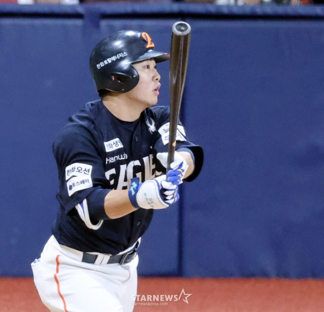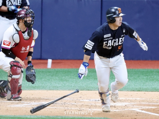 경기 초반 흔들리는 폰세를 잡아준 건 호수비였다. 1회말 송성문이 우중간 안타, 푸이그가 볼넷으로 출루하며 1사 1, 2루가 만들어졌다. 이때 최주환의 강한 땅볼 타구를 1루수 채은성이 잡아 2루로 송구해 선행 주자를 잡아내며 키움의 흐름을 끊어냈다. 폰세도 카디네스를 풀카운트 끝에 헛스윙 삼진으로 돌려세우며 안정적인 피칭을 보여주기 시작했다.