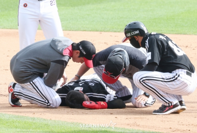 불행 중 다행으로 오스틴은 들것에 실리지 않고 스스로 일어나 더그아웃으로 했으나, 어지럼증을 호소해 7일 경기에서는 아예 결장했다. 당시 LG 염경엽 감독은 "오스틴은 집으로 갔다. 웬만하면 지명타자로 쓰려고 했는데, 어지럽다고 그러더라"면서 결장 배경을 설명했다.