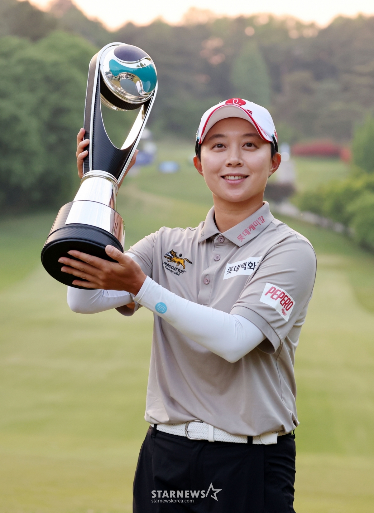 김효주 선수가 11일 오전 경기 고양시 뉴코리아CC에서 열린 아람코 코리아 챔피언십(Aramco Korea Championship)은 마지막날 경기에서 3언더파 합계 7언더파로 우승을 하고 세리머니를 하고 있다. 2025.05.11