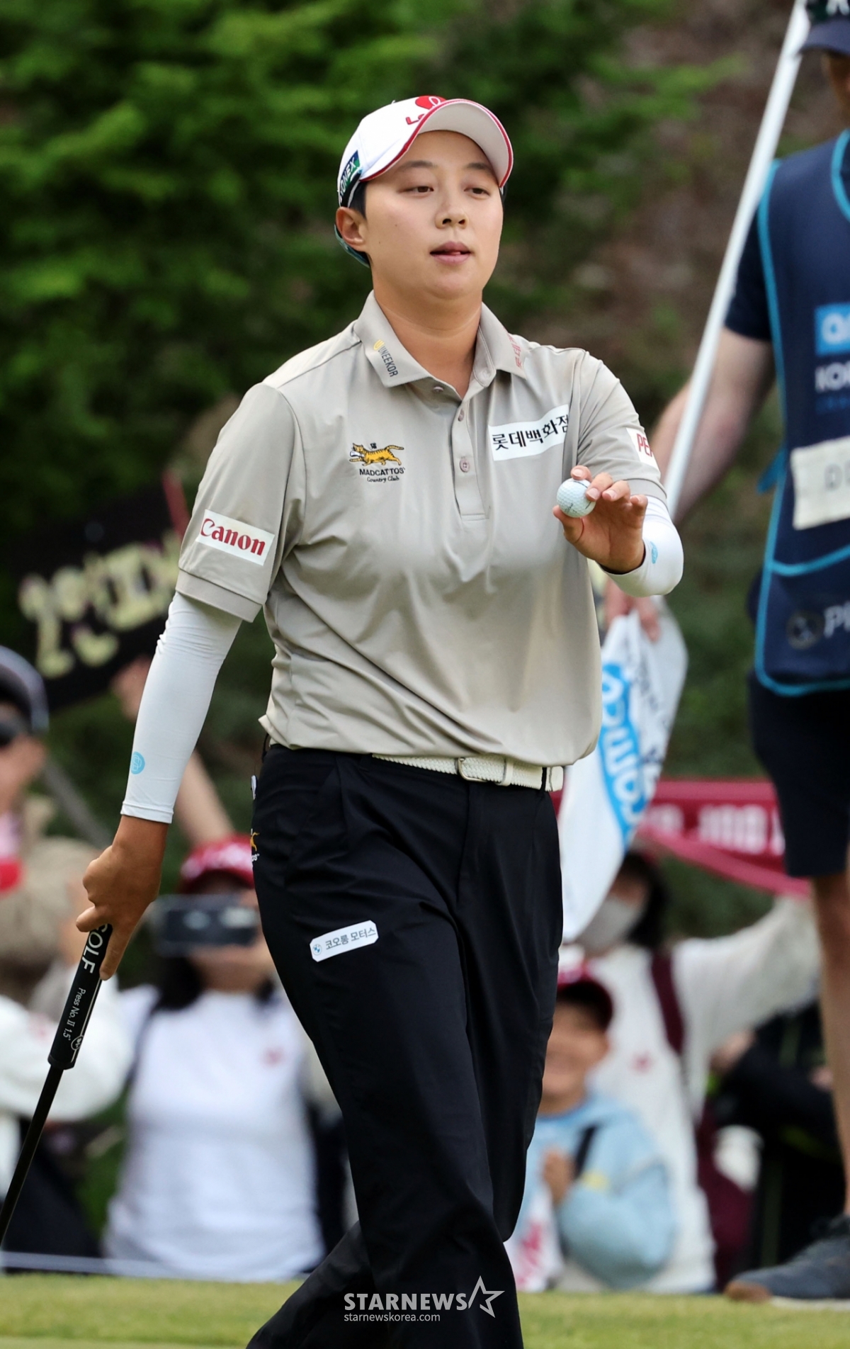 김효주 선수가 11일 오전 경기 고양시 뉴코리아CC에서 열린 아람코 코리아 챔피언십(Aramco Korea Championship)은 마지막날 경기 17번 홀 버디를 잡고 있다.2025.05.11