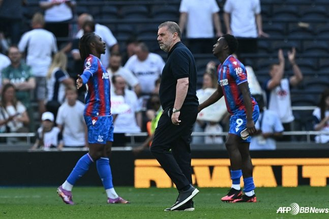 토트넘은 11일(한국시간) 영국 런던의 토트넘 홋스퍼 스타디움에서 열린 2024~2025시즌 잉글랜드 프리미어리그(EPL) 36라운드 크리스탈 팰리스전에서 0-2로 졌다.