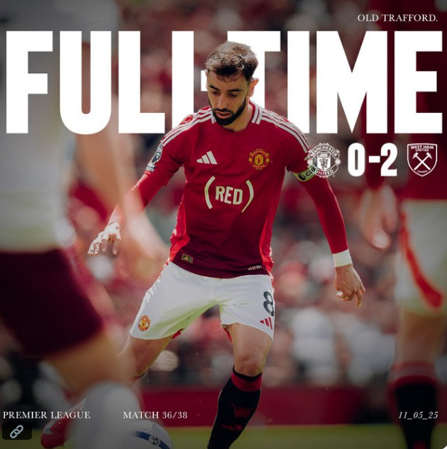 맨유는 11일(한국시간) 영국 맨체스터의 올드 트래포드에서 열린 웨스트햄과 '2024~2025 잉글리시 프리미어리그(EPL)' 36라운드 홈 경기에서 0-2로 패했다.