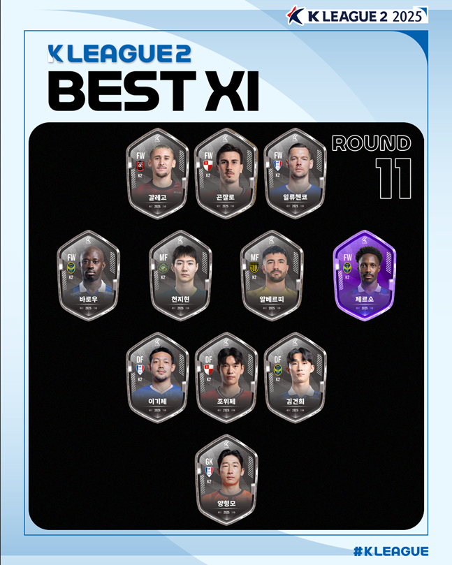 '하나은행 K리그2 2025' 11라운드 MVP는 인천 제르소(34)가 차지했다.