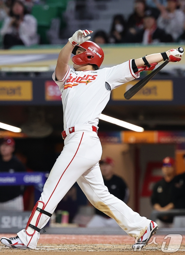 최정은 13일 인천 SSG랜더스필드에서 열린 NC 다이노스와 2025 신한 SOL뱅크 KBO리그 홈경기에서 3번 지명타자로 선발 출전해 6회말 2사 1루에서 투런 홈런을 터뜨렸다.