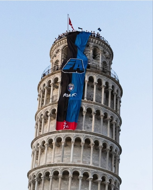 이탈리아 세리에B(2부) 축구클럽 AC피사는 지난 12일(한국시간) 세계 문화유산, 세계 7대 불가사의로 유명한 '피사의 사탑'에 세리에A(1부) 승격 플래카드를 걸어놓은 사진을 업로드했다. 이와 함께 "역사는 만들어졌다"고 적었다.