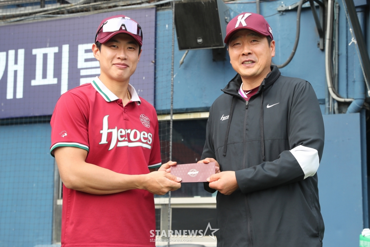 스포츠야구[포토] 홍원기 감독 '스승의날, 캡틴이 쐈어요'발행 : 2025.05.15 ・ 16:36잠실=김진경 대기자2025 신한 SOL Bank KBO리그 LG 트윈스 대 키움 히어로즈 경기가 16일 잠실야구장에서 열렸다.키움 주장 송성문(왼쪽)이 스승의 날을 맞아 홍원기 감독에게 상품권을 선물하고 있다.<저작권자 © 스타뉴스, 무단전재 및 재배포 금지>프로야구KBO키움_히어로즈시구시타LG_트윈스추천 기사김진경 대기자기자홈좋아요 스포츠-야구의 인기 급상승 뉴스스포츠-야구의 최신 뉴스
