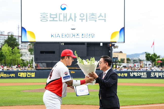 광주출입국·외국인사무소는 광주, 전남 지역 외국인과 이민자의 안정적인 정착과 사회 통합을 지원하고 있는 법무부 소속 기관이다. 위촉식은 15일 광주-기아 챔피언스필드에서 펼쳐진 롯데전에 앞서 열렸다. 위촉식에는 광주출입국·외국인사무소 길강묵 소장이 참석해 최형우에게 위촉장과 꽃다발을 전달했다.