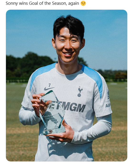 이로써 손흥민은 통산 5번째 구단 올해의 골 주인공으로 뽑혔다. 앞서 손흥민은 2017~2018시즌, 2019~2020시즌, 2022~2023시즌 올해의 골로 뽑혔다.