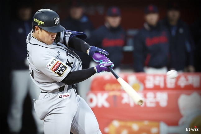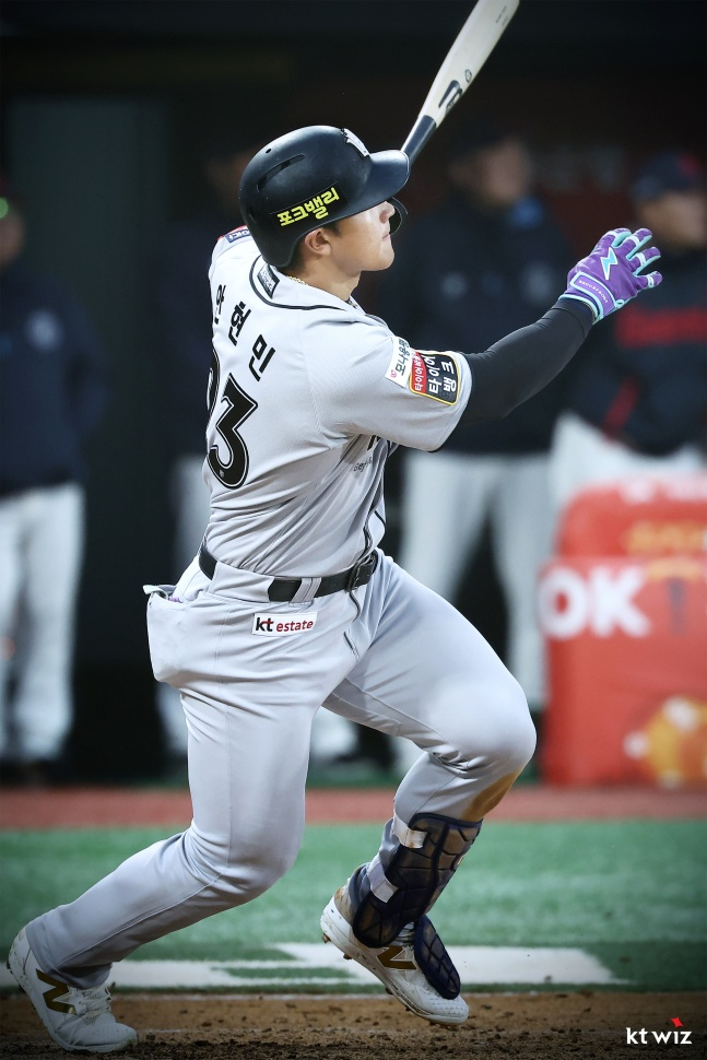 자연스럽게 1군 기회를 받았고, 그 결과는 더욱 놀라웠다. 지난달 29일 콜업 후 5월 1일 잠실 두산전에서 지난해 신인왕이자 마무리 김택연을 상대로 9회초 1사 1루에서 동점 투런포로 무승부를 이끌었다. 이강철 감독은 "잠실에서 김택연에게 홈런 친 뒤로 확실히 달라진 것 같다. 그때부터 자신감을 얻은 것 같다. 그때부터는 수원 가서도 바로 안타를 치고 해서 자신감이 붙었다"고 말했다.