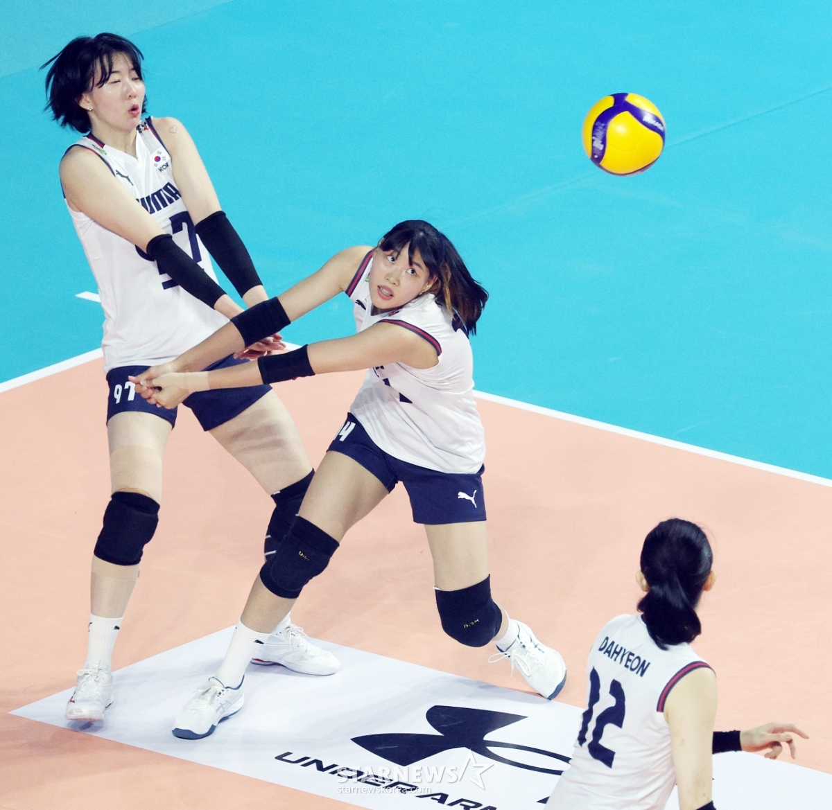 스포츠일반[포토]]'내가 받을게 언니' 정윤주발행 : 2025.05.17 ・ 17:40인천=강영조 선임기자광고삭제대표팀 정윤주가 17일 삼산월드체육관에서 열린 '제2회 김연경 인비테이셔널(KYK INVITATIONAL 2025)' 월드올스타와 대한민국국가대표팀 경기에서 리시브를 하고 있다.17일 여자배구 세계올스타와 대한민국 여자배구 국가대표팀 경기가 열리고 18일에는 세계올스타가 양팀으로 나눠 일전을 벌인다. 2025.05.16.<저작권자 © 스타뉴스, 무단전재 및 재배포 금지>정윤주대한민국김연경포토언니대표추천 기사강영조 선임기자기자홈좋아요 스포츠-일반의 인기 급상승 뉴스스포츠-일반의 최신 뉴스