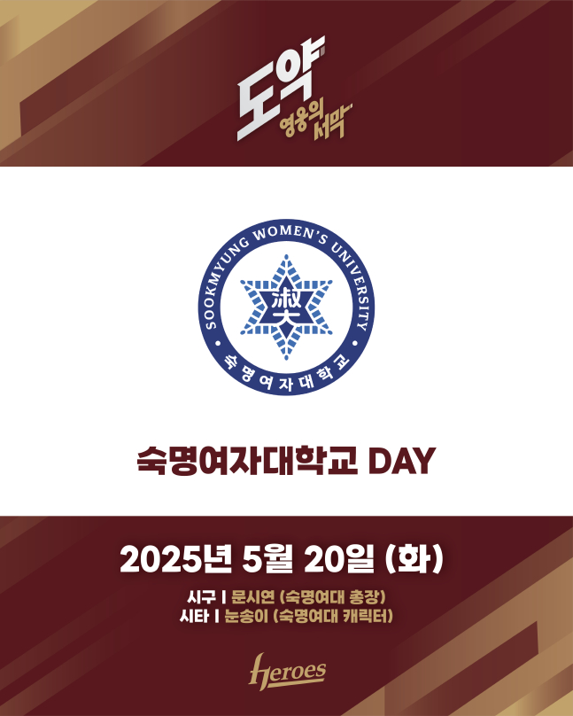키움히어로즈, 20일 삼성전 '숙명여대 데이' 행사 진행... 시구·시타·특별공연 펼친다