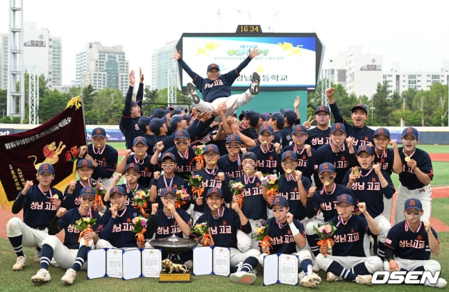 그러나 성남고는 1회부터 대거 6점을 뽑으면서 초전 박살로 경기 흐름을 휘어잡았다. 5타자 연속 안타에, 타구 질도 담장 끝까지 가는 장타가 4차례 나오는 등 압도적인 화력으로 기선을 제압했다. 여기에 주장이자 안방마님 이서준(18)이 제구가 흔들리는 조윤호(18)를 잘 리드해 5회까지 이끌었고, 6회에는 쐐기 투런포에서 공·수에서 맹활약했다. 2학년 에이스 봉승현(17)도 4이닝 무사사구 5탈삼진 1실점으로 유신고 타선을 억누르면서 마침내 성남고는 전국 고교 팀 중 가장 높은 자리에 우뚝 섰다.